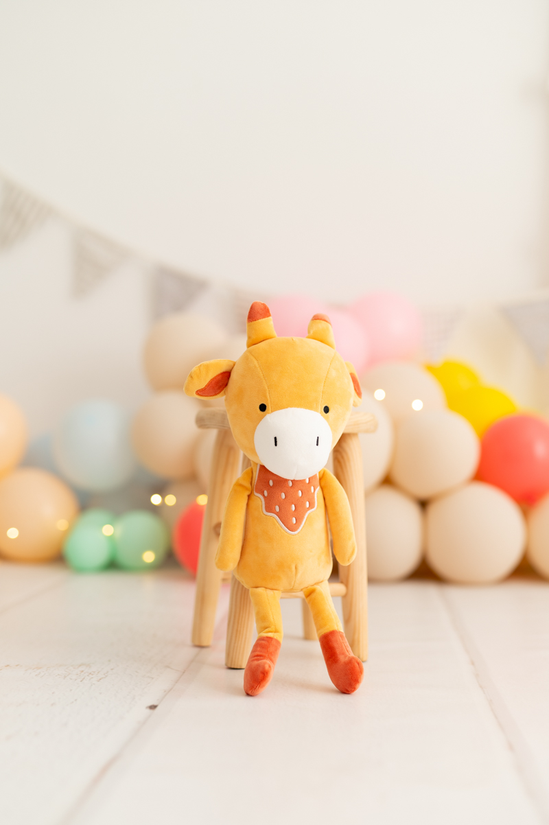 Diese niedliche Stoffgiraffe ist aus ultraweichem, samtigem Stoff gefertigt und eignet sich perfekt, um die Kleinen in ihren Momenten der Ruhe und des Spiels zu begleiten.