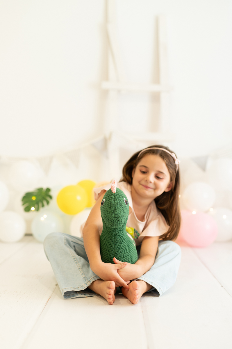 Der Plüsch-Dinosaurier ist nicht nur ein Spielzeug: Er ist ein Stück handgefertigtes Design, das jedes Kinderzimmer in einen Raum voller Wärme und Persönlichkeit verwandelt. Seine handgestickten Details und die sorgfältige Verarbeitung spiegeln den nachhaltigen Geist und die Authentizität von Crochetts® wider, wo jedes Produkt mit Liebe, Respekt und Liebe zum Detail hergestellt wird.