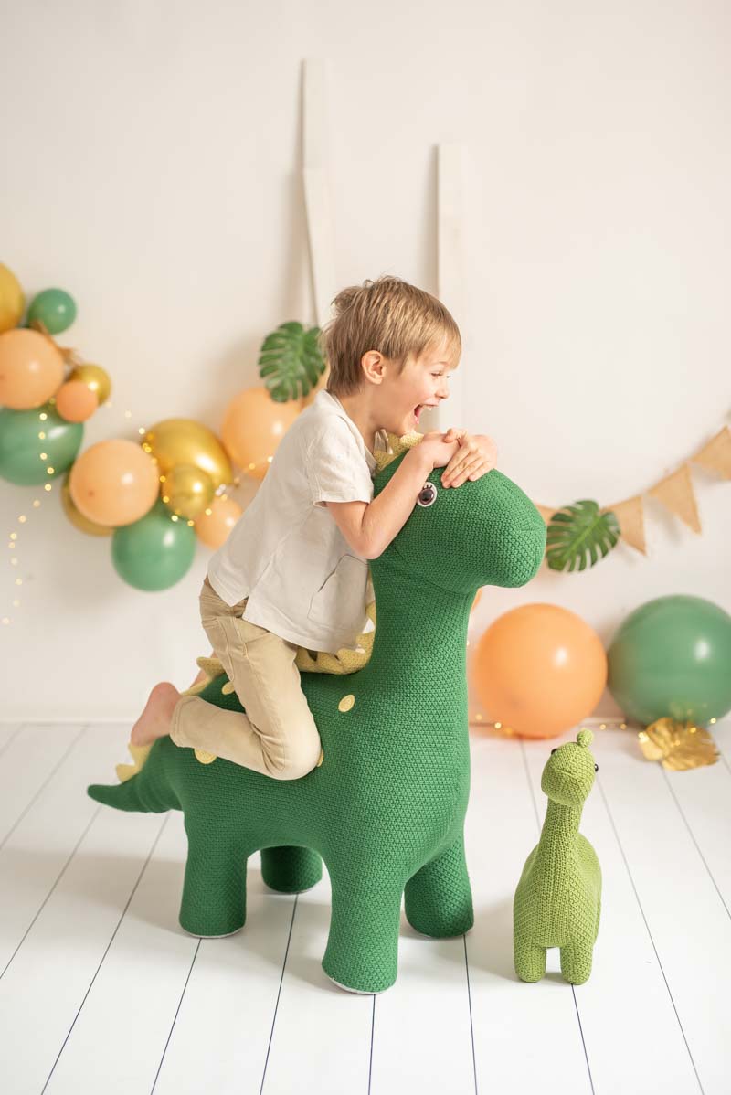 Das Dinosaurier-Stofftier ist nicht nur ein Spielzeug: Es ist ein Stück handgefertigtes Design, das jedes Kinderzimmer in einen Raum voller Wärme und Persönlichkeit verwandelt.