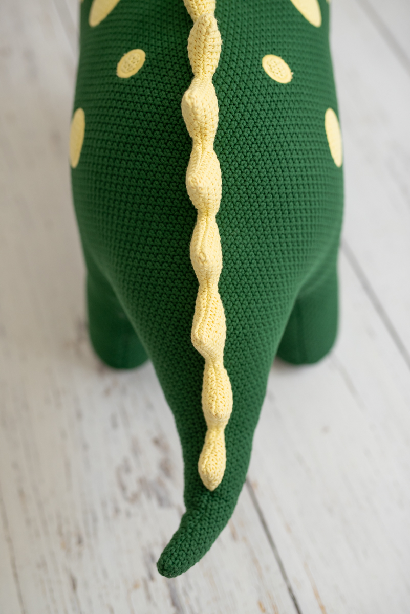Entdecken Sie die Zärtlichkeit in seiner größten Version des Riesen-Dinosaurier-Plüschs aus 100% natürlicher Baumwolle in Maxi-Größe, einer einzigartigen, zarten und sicheren handgefertigten Kreation von Crochetts®, die das Kinderzimmer mit Magie, Design und Natürlichkeit erfüllt.