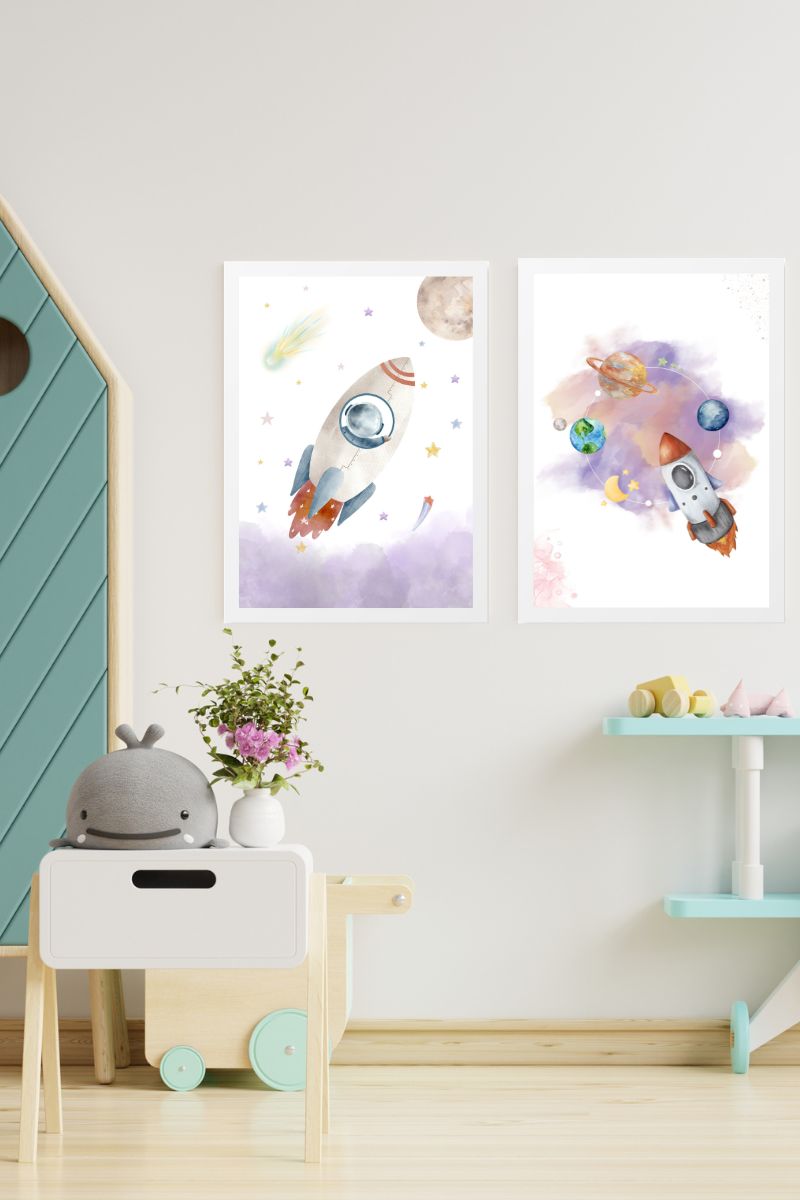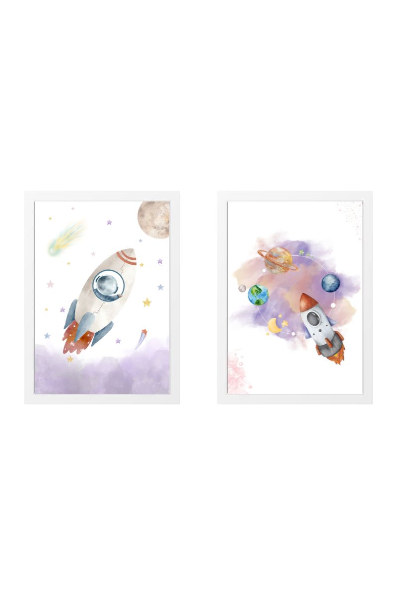 PACK 2 CHILDREN’S PAINTINGS ROCKET BETWEEN PLANETS