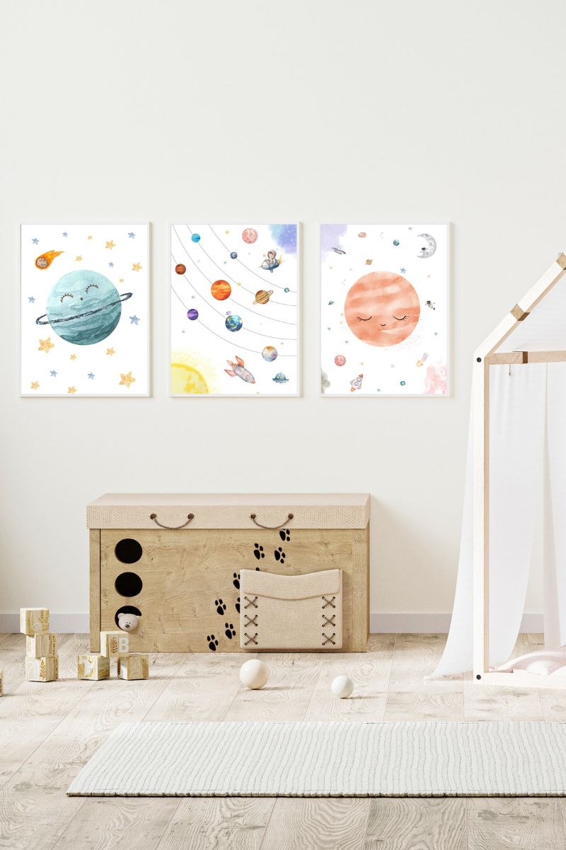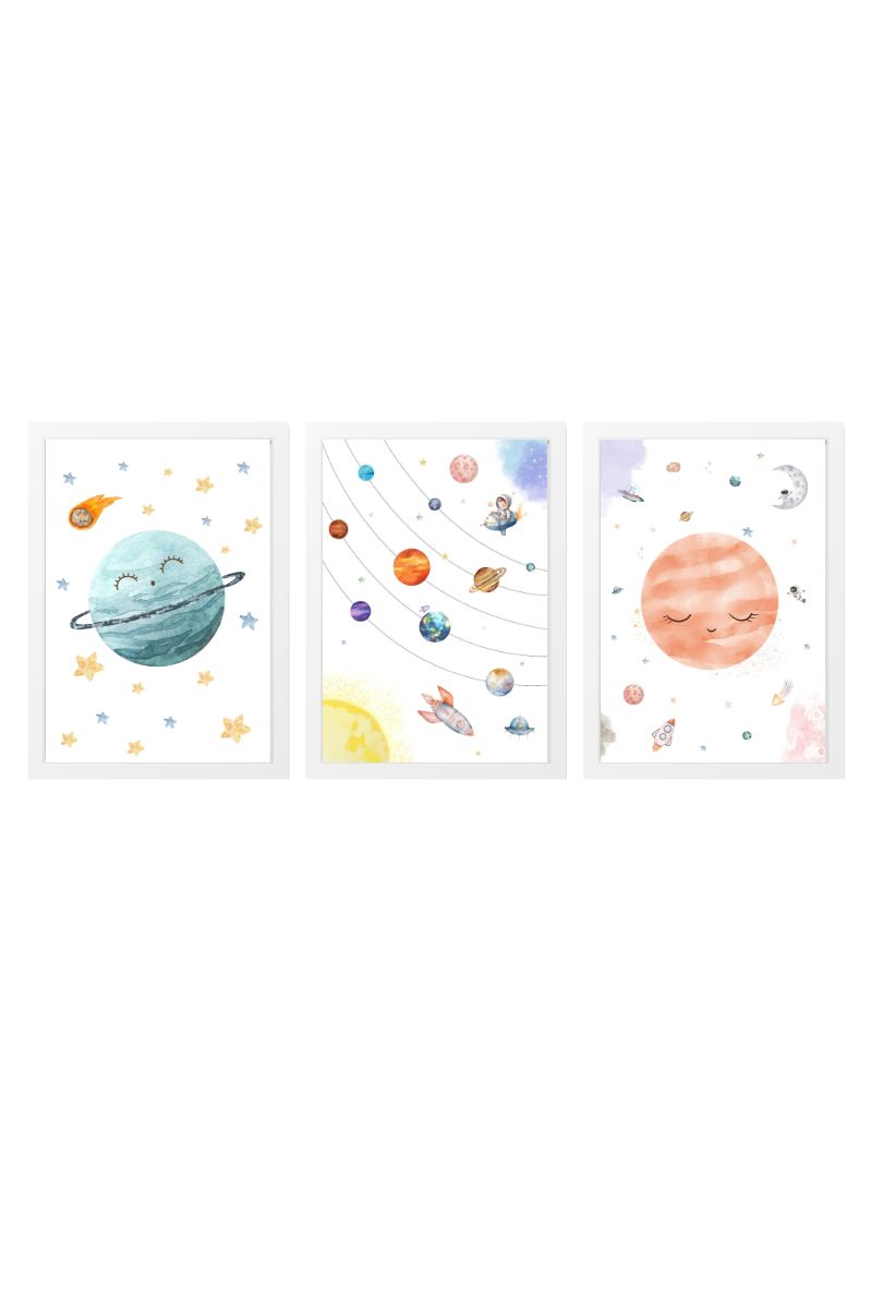 PACK 3 CHILDREN’S PAINTINGS WITH PLANETS AND SOLAR SYSTEM