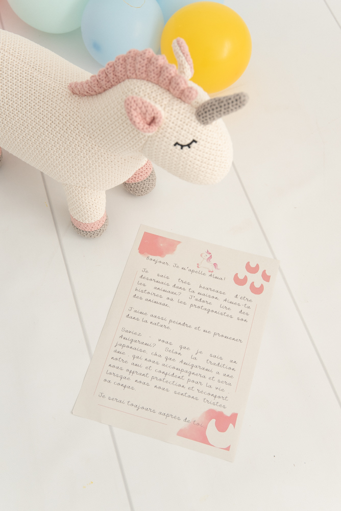 Il comprend une lettre de bienvenue personnalisée dans laquelle le doudou se présente à l’enfant, créant ainsi un lien spécial dès le premier instant. Un détail qui fait de cette peluche un cadeau original et émotionnellement unique.