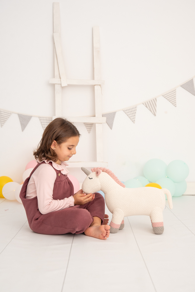 La peluche Licorne n’est pas un simple jouet : c’est une pièce de design artisanale qui transforme toute chambre d’enfant en un espace plein de chaleur et de personnalité. Ses détails brodés à la main et ses finitions soignées reflètent l’esprit durable et l’authenticité de Crochetts®, où chaque produit est créé avec amour, respect et souci du détail.