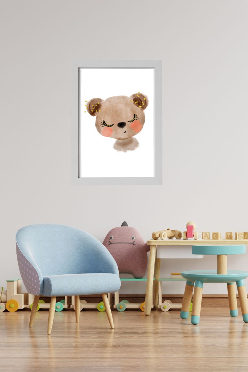 Affiche décorative pour enfants avec un dessin joyeux en forme de petit ours.