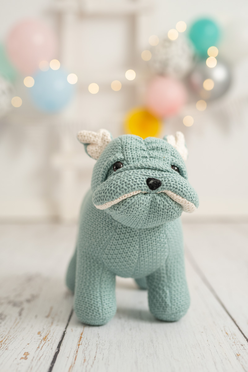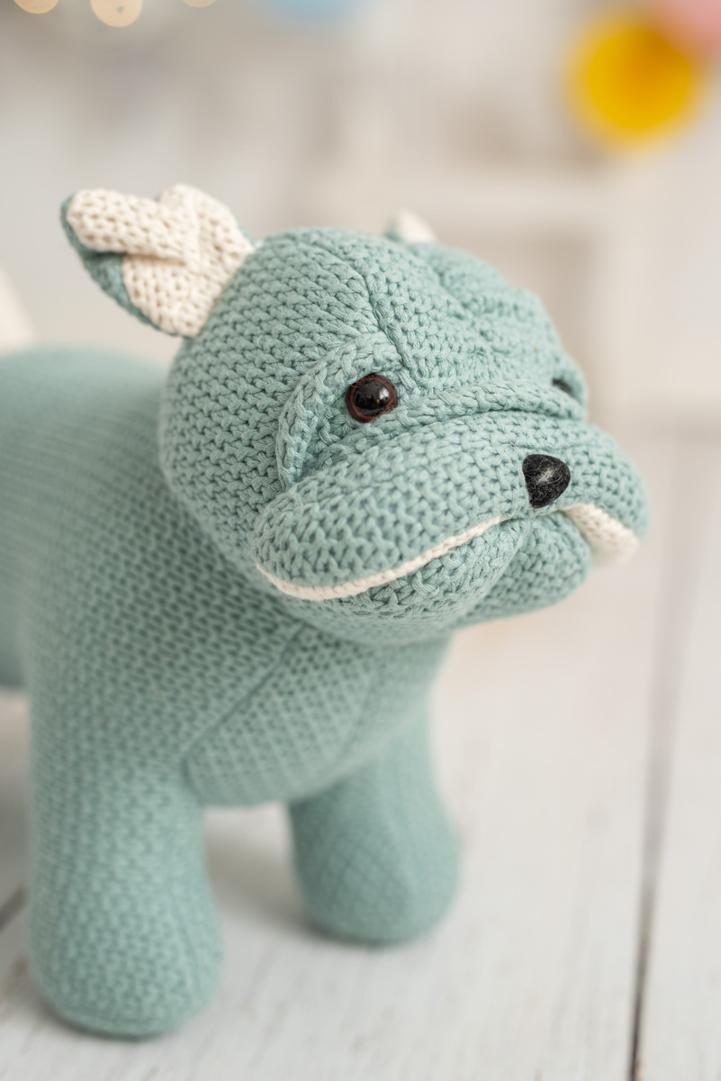 Descubre nuestro peluche bulldog Brutus de crochet 100% algodón natural, un juguete artesanal ideal para bebés y niños pequeños. Este adorable peluche de algodón combina diseño, suavidad y sostenibilidad para acompañar en los mejores momentos de juego, descanso y ternura de los más pequeños.