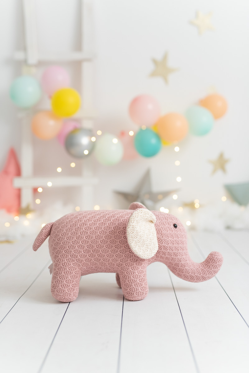 Cada elefante está cuidadosamente fabricado con algodón orgánico de alta calidad y relleno hipoalergénico, asegurando comodidad y durabilidad. Su delicada trompa y detalles en crochet hacen de este peluche un compañero adorable y resistente.