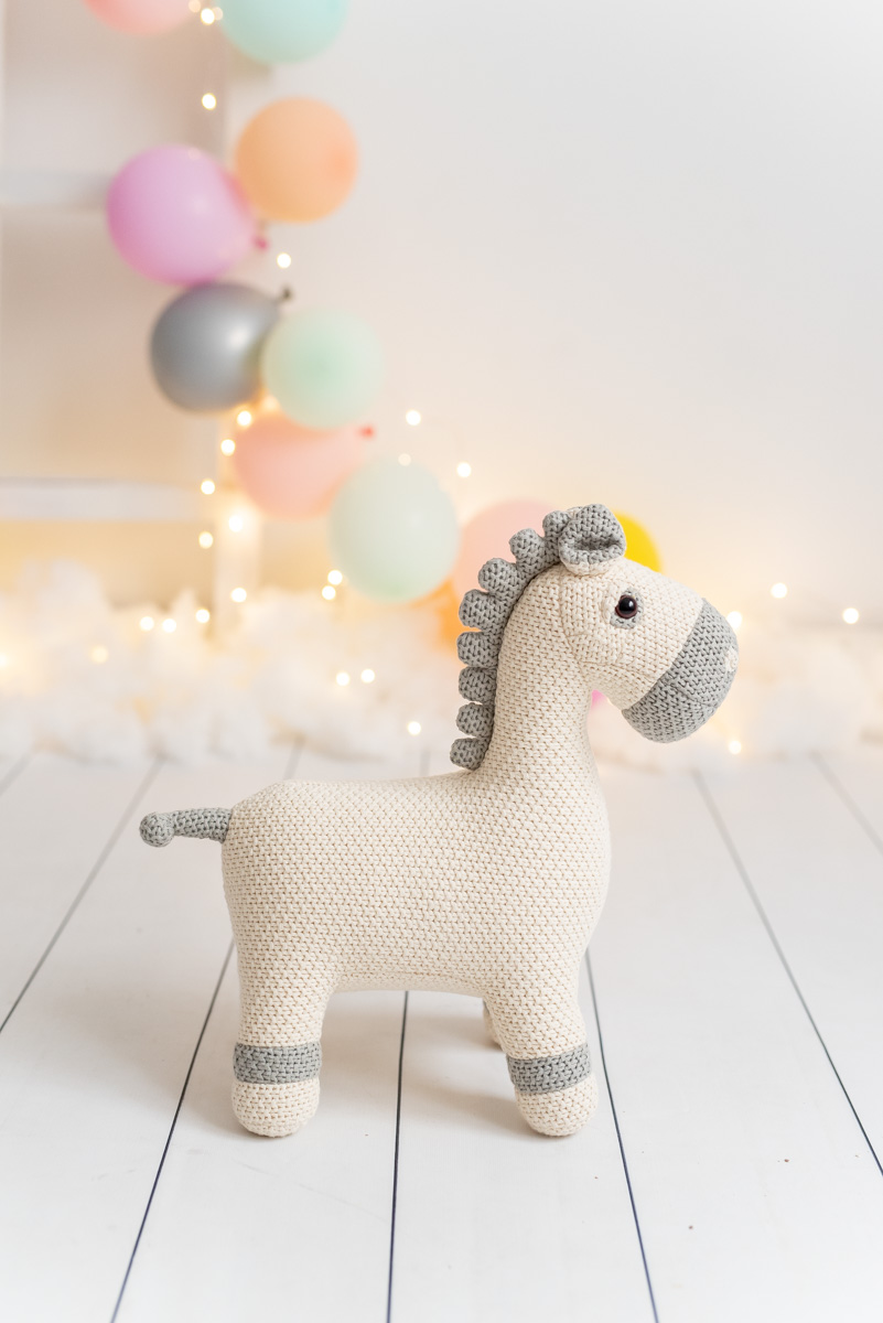 Descubre nuestro peluche yegua Yeni de crochet 100% algodón natural, un juguete artesanal ideal para bebés y niños pequeños. Este adorable peluche de algodón combina diseño, suavidad y sostenibilidad para acompañar en los mejores momentos de juego, descanso y ternura de los más pequeños.