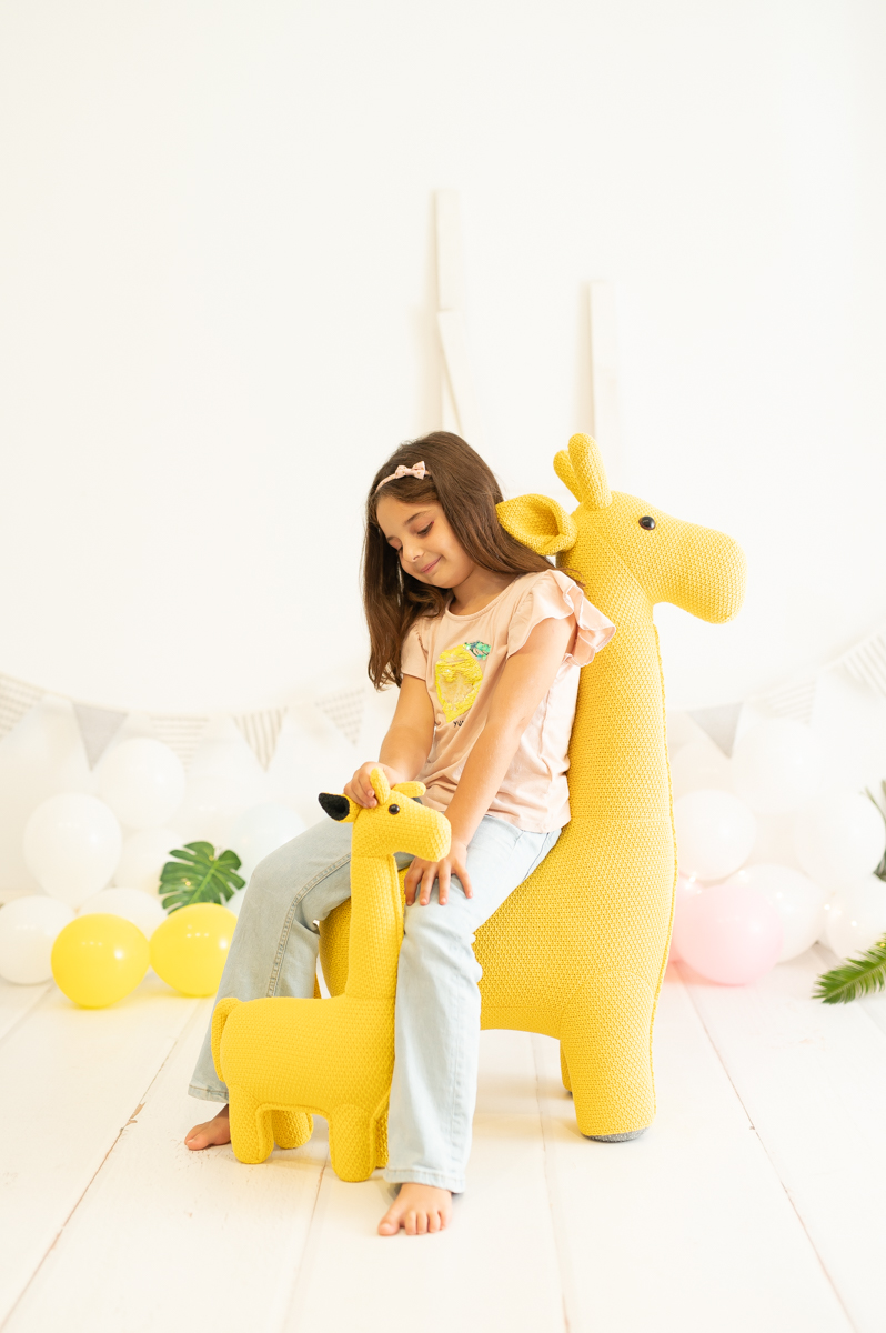 Dale un toque de magia y ternura a la habitación infantil con este encantador set de 2 peluches jirafa de Algodón 100% natural, diseñado para ofrecer horas de juego, comodidad y decoración. El pack incluye una jirafa gigante asiento, perfecto para que los pequeños se sienten, lean o jueguen, y un peluche jirafa tamaño normal, suave y abrazable, ideal para acompañarlos en cada aventura.